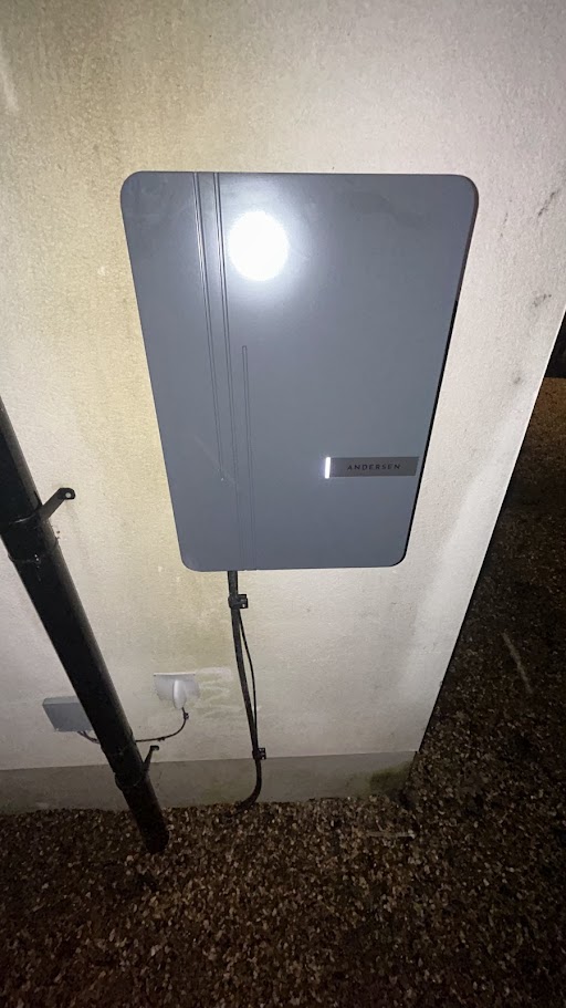 The homeowner now has a fully compliant, professionally installed Andersen A2 EV charger, positioned exactly where they wanted it.